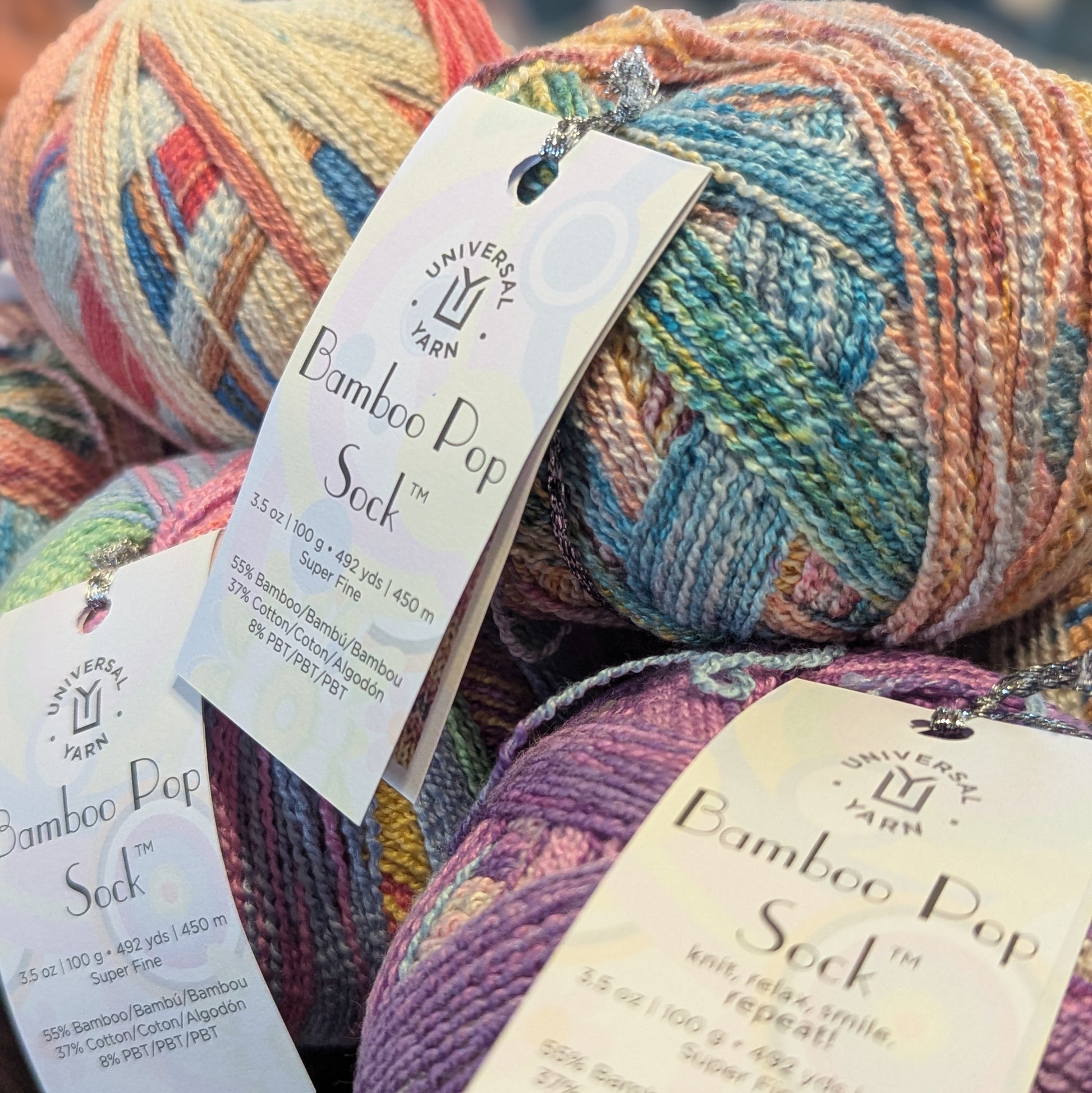 Stretchy, vibrant, and colorful, self-patterning Bamboo Pop Sock is 100% wool-free. Great for cheerful socks, accessories, baby knits, and more!
