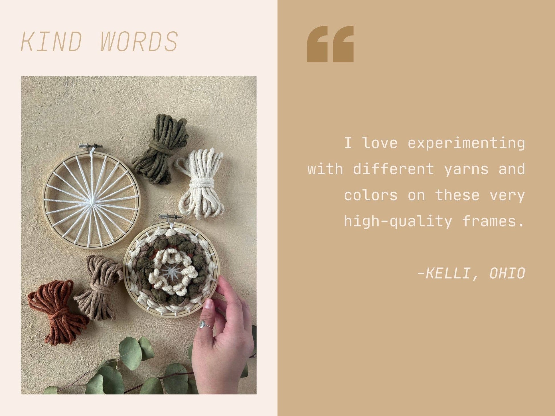 Each kit comes with enough material to make at least one complete round weaving and printed instructions.