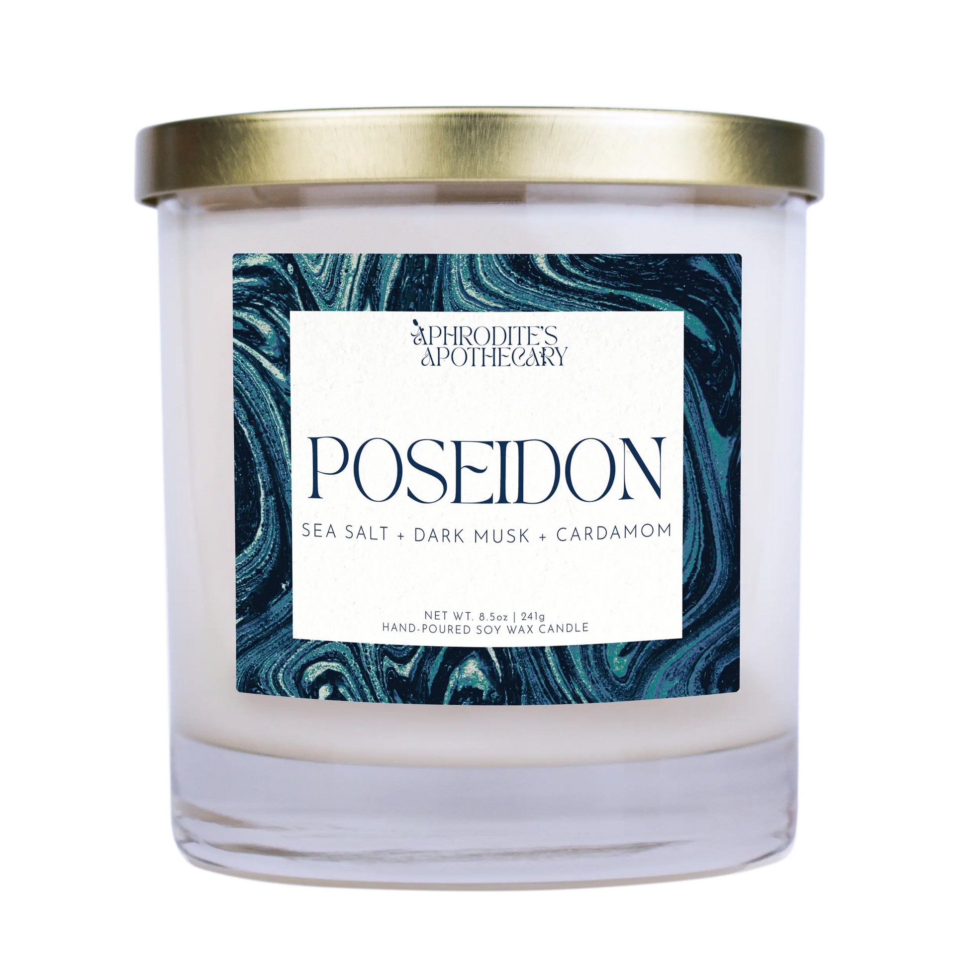 A sea-hardy scent, our Poseidon Candle captures the mysterious and powerful essence of the ocean. Sea salt, dark musk, plum, and cardamom create a complex and masculine fragrance that is both deep and aquatic. Channeling Poseidon, god of the sea, this scent will leave you feeling like you've just set sail on the briny waves of the Aegean.